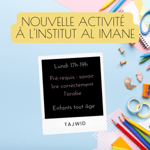 Pour permettre l’apprentissage les bases des règles de la récitation du Coran à vos enfants ainsi que la mémorisation des Sourates, nous avons ouvert depuis aujourd’hui 1 nouveau créneau: